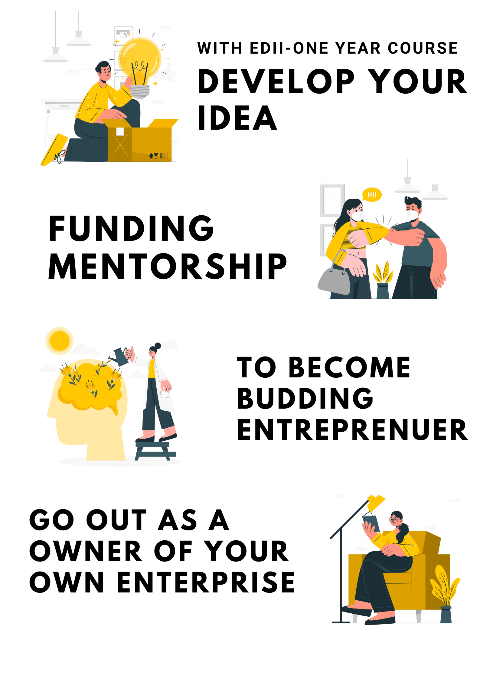 MissionEntrepreneurship Development and Innovation Institute (EDII-TN) and Entrepreneurship Development Institute of India (EDII) are jointly dedicated in providing a transformative one year PG Diploma Programme in Entrepreneurship and Innovation.Through a blend of rigorous academics,practical learning experiences, and mentorship from industry experts.